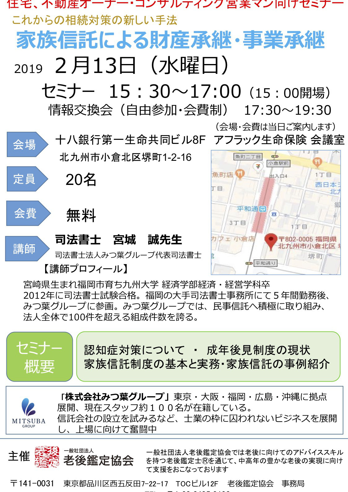 今回、当協会では、家族信託の第一人者である株式会社みつ葉グループより講師をお招きしてセミナーを開催いたします。